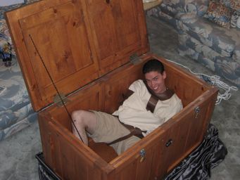 Despite folding to such a small size, the box has more than enough room to work with a 6'2" performer! "The Trickster" seen here before his European tour